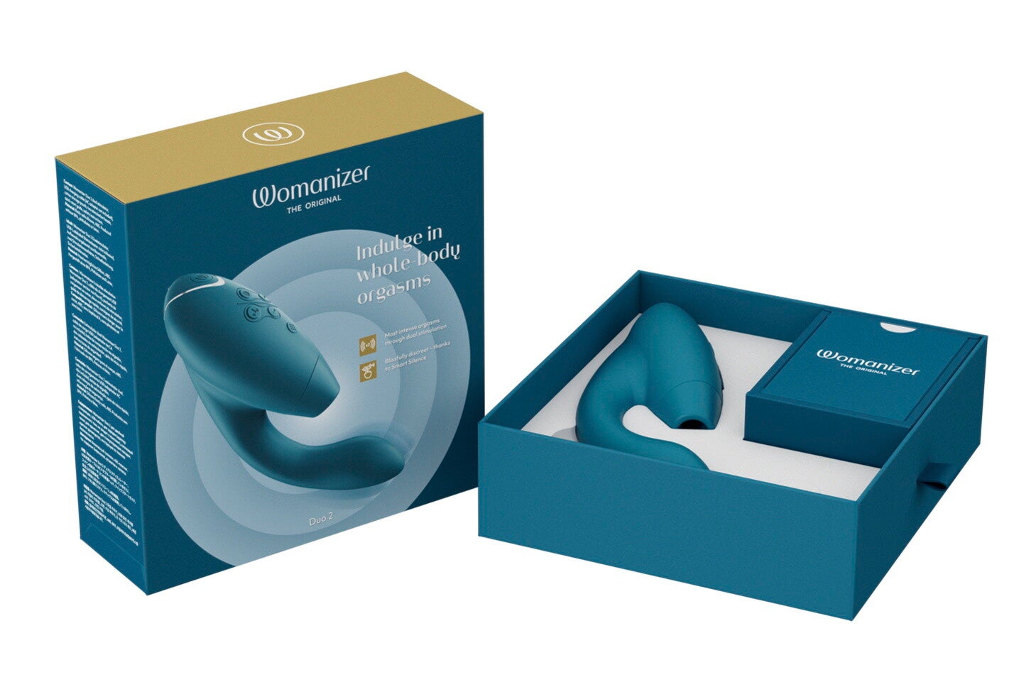 De revolutionaire Womanizer Pleasure Air™ technologie gecombineerd met krachtige G-spot stimulatie - dat is de DUO 2 van Womanizer. Het klassieke Womanizer clitoris opzetstuk verwent de vrouwelijke genotsparel, terwijl de vibratorarm, die zich flexibel aanpast aan de vrouwelijke lichaamsvorm, de innerlijke hotspot optimaal stimuleert.